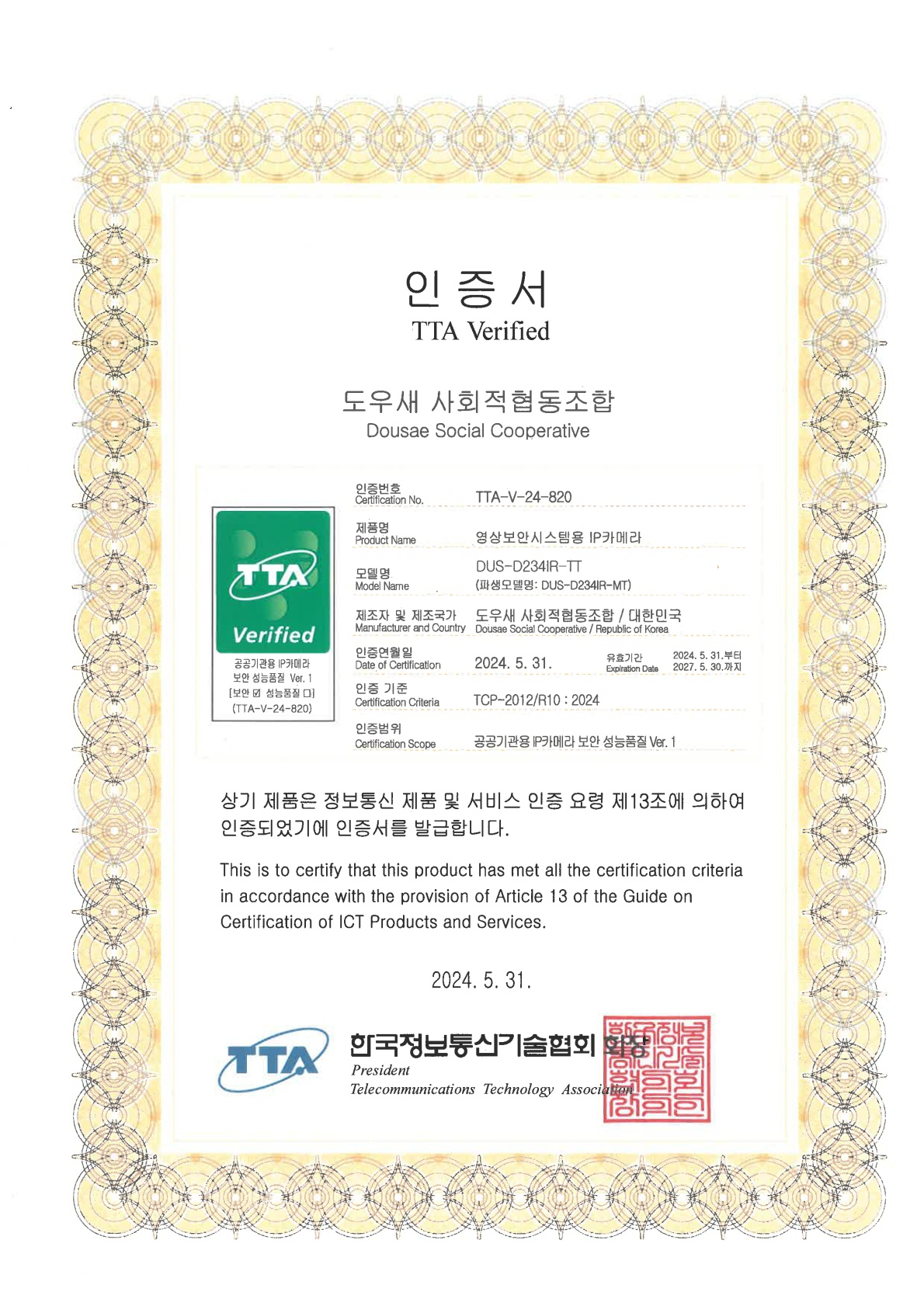 TTA 인증정보